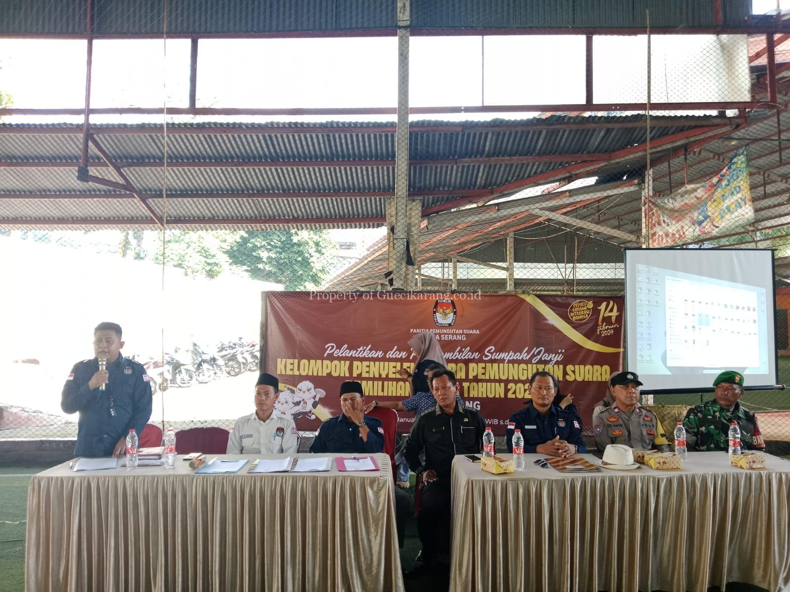 “Hari ini hampir semua Anggota KPPS mengikuti pelantikan dan pengambilan sumpah dari 53 TPS se Desa Serang” ungkap Ade Rahmanto.