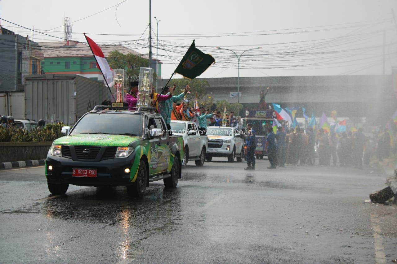Dalam arak-arakan tersebut Pj Bupati Bekasi Dani Ramdan menaiki kendaraan bersama para Qori dan Qoriah dan disambut antusias warga yang ikut bergembira atas peraihan Juara Umum Kabupaten Bekasi.