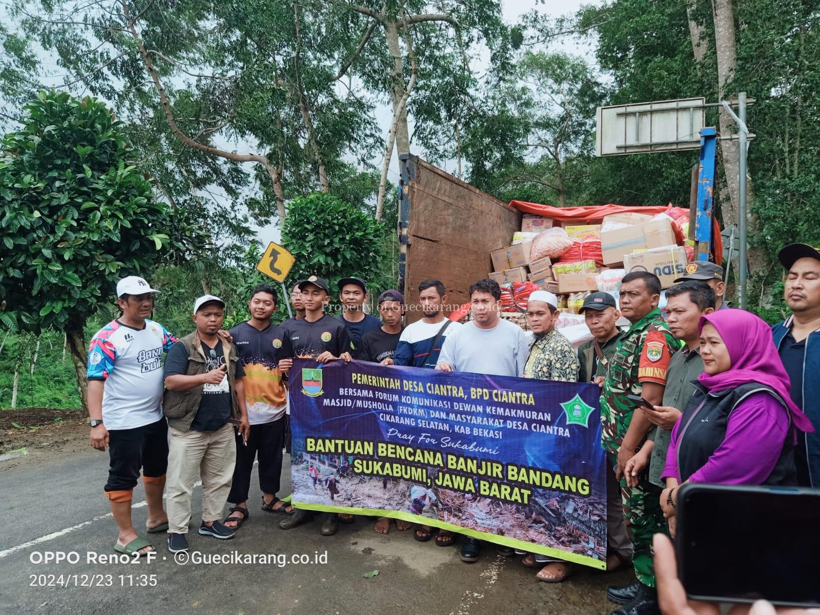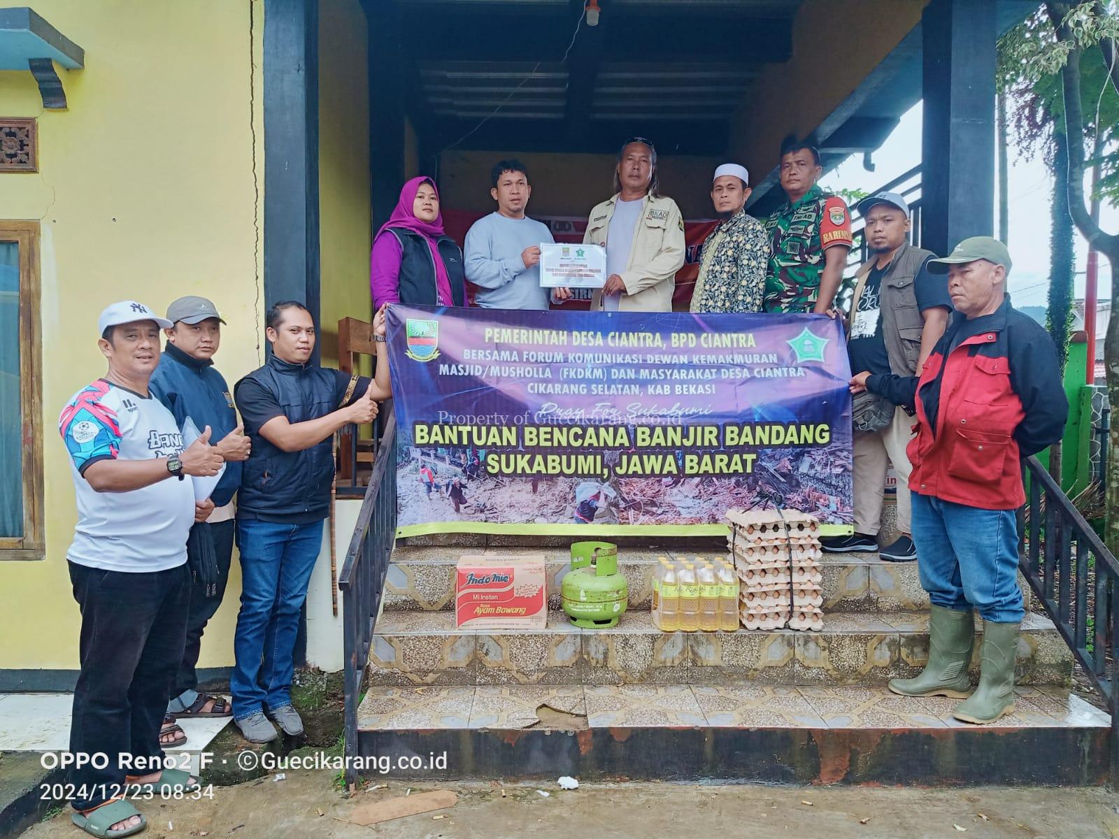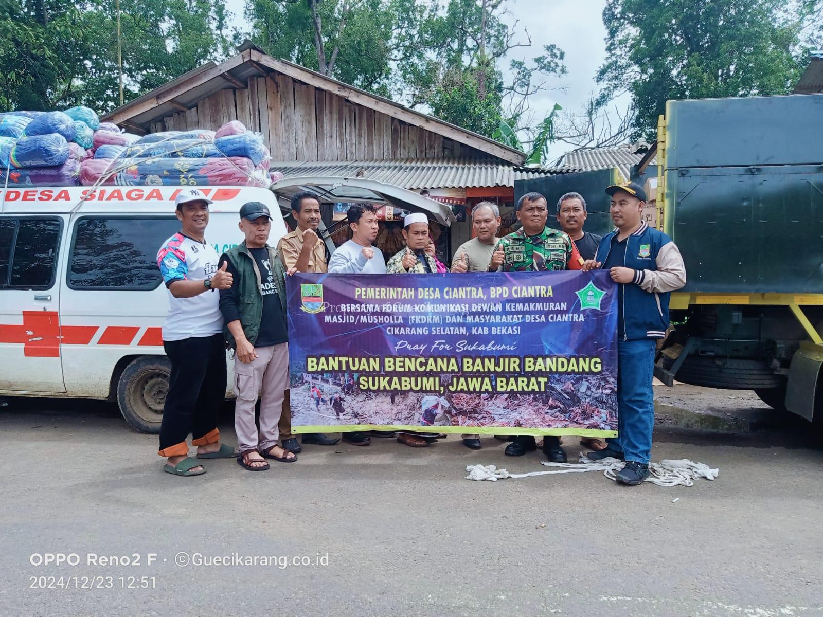 Sukabumi – Pemerintah Desa Ciantra bersama Forum Komunikasi Dewan Kemakmuran Masjid (FK-DKM) menyalurkan bantuan untuk korban bencana longsor dan pergerakan tanah serta banjir bandang di wilayah Sukabumi. Bantuan tersebut disalurkan langsung oleh Kepala Desa Ciantra, Mulyadi Fernando yang akrab disapa Bang Bulle, bersama jajaran pemerintah desa dan Ketua FK-DKM, KH. H. Jamiludin.