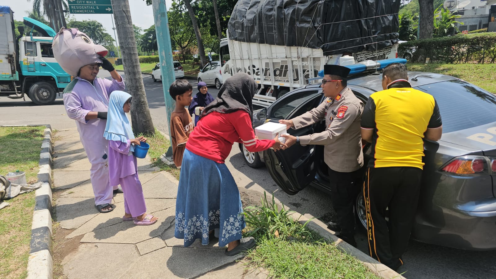 Turut hadir dalam kegiatan tersebut, IPTU Fauzi, S.H., M.Si selaku Kanit Intelkam dan IPTU Sofrowi selaku Kanit Provos. Mereka bersama-sama terjun ke lapangan membagikan sebanyak 50 kotak nasi kepada warga yang membutuhkan, khususnya para pemulung dan pengemudi ojek online yang sedang beraktivitas di sekitar lokasi.