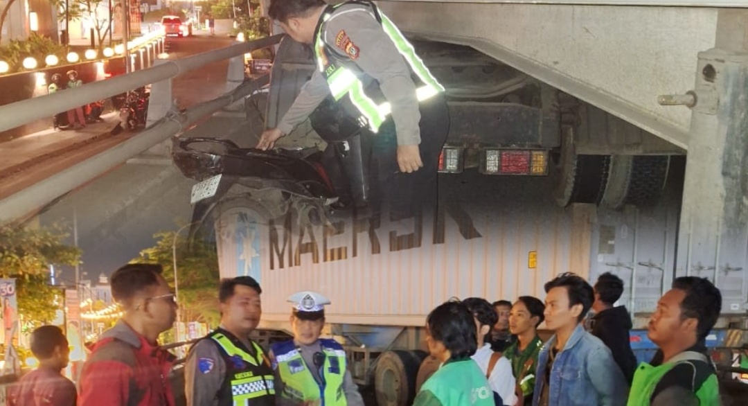 Cikarang Selatan – Kecelakaan lalu lintas melibatkan satu unit truk trailer dan dua sepeda motor terjadi di Jalan Raya Cikarang–Cibarusah, tepatnya di flyover samping Pollux Mall, Desa Pasir Sari, Kecamatan Cikarang Selatan, Kabupaten Bekasi, Senin (15/12/2025).
