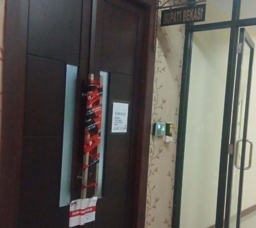Setelah itu, ketiganya langsung menuju lantai dua ke ruang kerja Bupati Bekasi. Sekitar tiga puluh menit berselang, dua pintu ruang kerja tersebut sudah dalam kondisi tersegel.