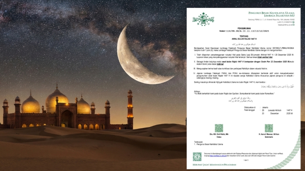 PBNU Tetapkan Awal Bulan Rajab 1447 Hijriah Jatuh pada Senin, 22 Desember 2025