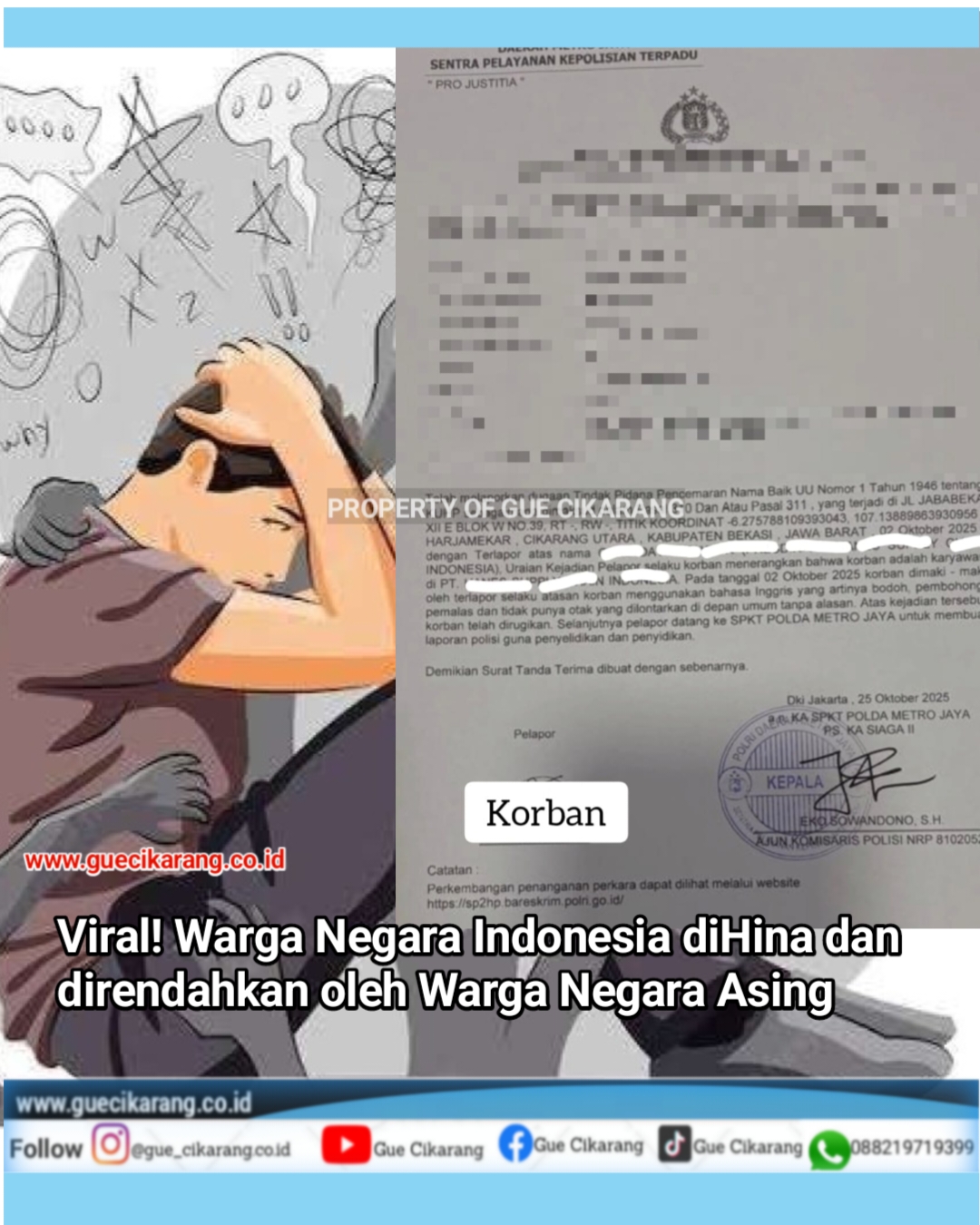 Merasa direndahkan dan dipermalukan, korban akhirnya memutuskan untuk melaporkan kejadian tersebut ke Polda Metro Jaya guna mendapatkan keadilan atas perlakuan yang diterimanya.